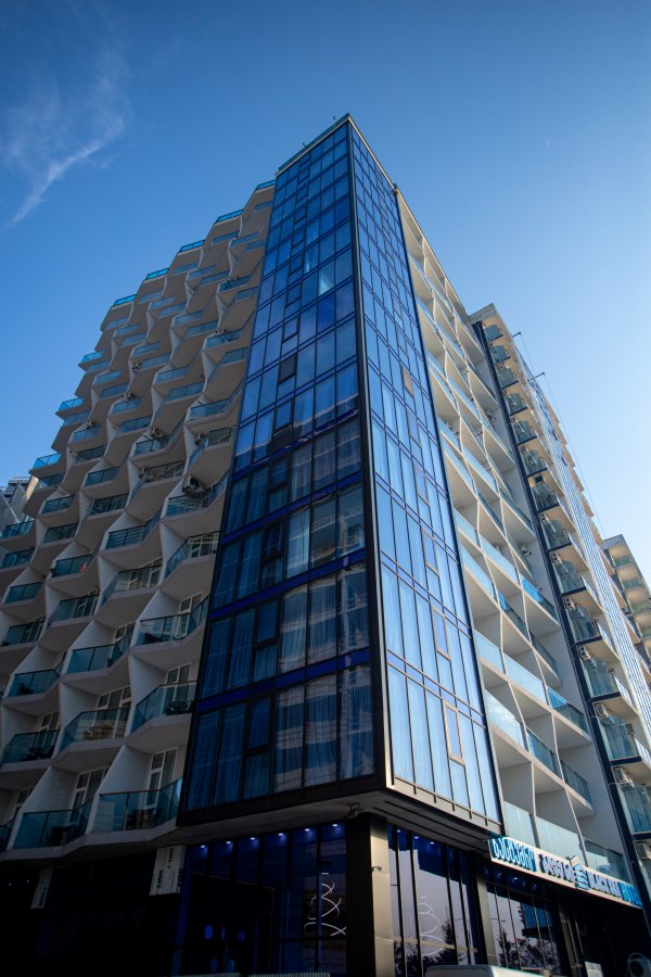 The hotel is located on the seafront of Batumi's new boulevard. Guests, visitors, and tourists have the opportunity to enjoy the harmonious blend of sea and mountain views. Due to the hotel complex's location, the building's yard extends onto the territory of the new boulevard, offering direct access to the pedestrian walkway and the beach area.