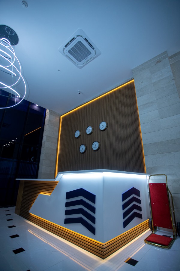 The hotel hosts a restaurant, cafe bars, shops, an open pool, and a terrace. The terrace is designed to ensure that guests can use the pool, jacuzzi, and relax with a direct view of the sea. There is also a parking lot and a lobby that meets modern standards, as well as a conference hall.